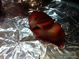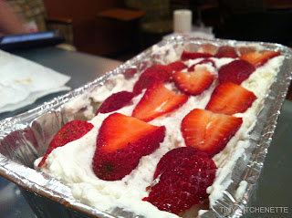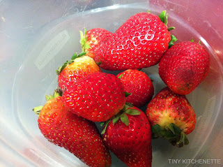 Wash all the strawberries. The recipe originally called for setting a couple aside for garnish. I attempted to do that, but since I broke my dish into smaller containers to give away instead of just one pan, I eventually skipped that step.