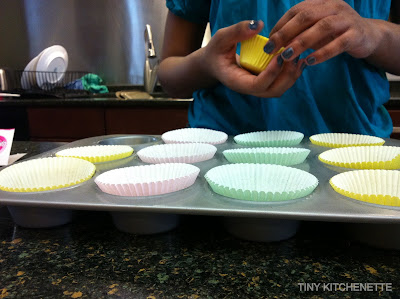 Line a muffin pan with pretty pastels colors, in hopes that Spring will soon arrive.