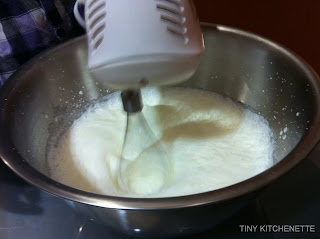 Anywho, whip 3 cups of cream with a hand mixer until it holds stiff peaks.