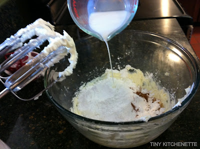 Now slowly incorporate flour and milk. Alternating between flour and milk.